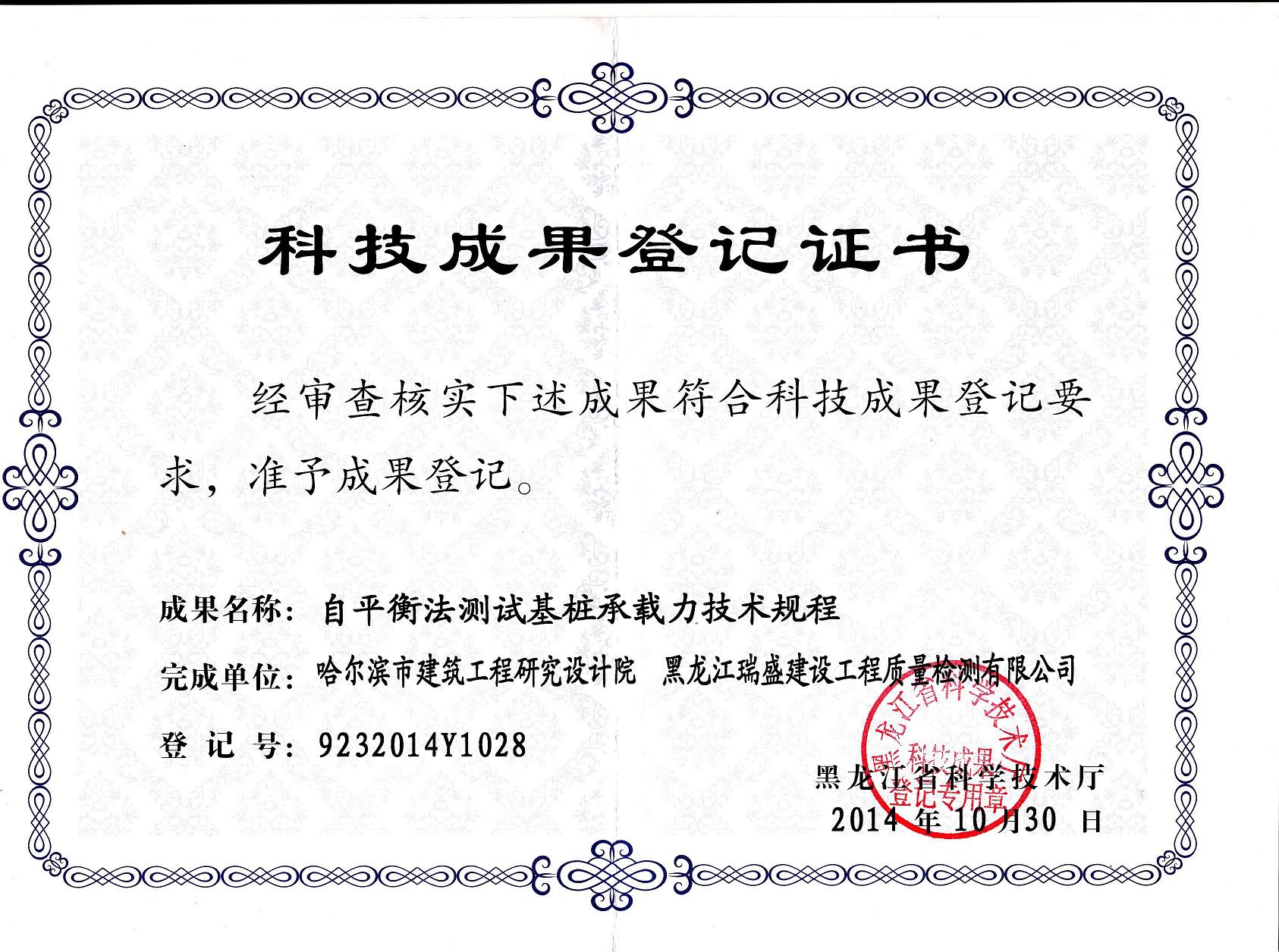 自平衡法測試成果證書